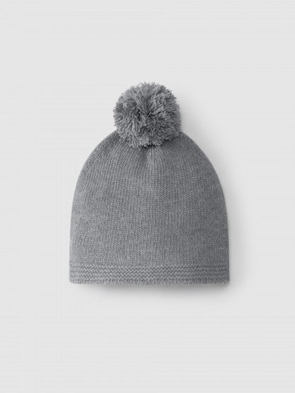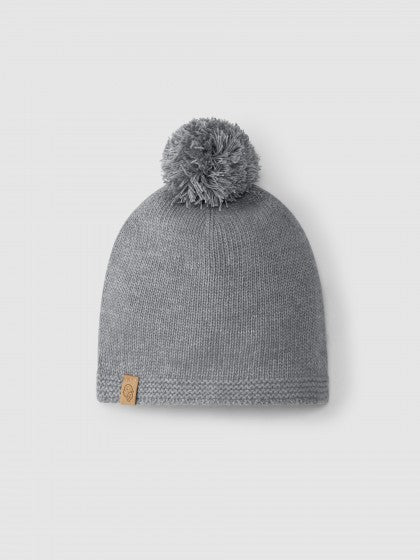 Knitted pom pom beanie - Grey