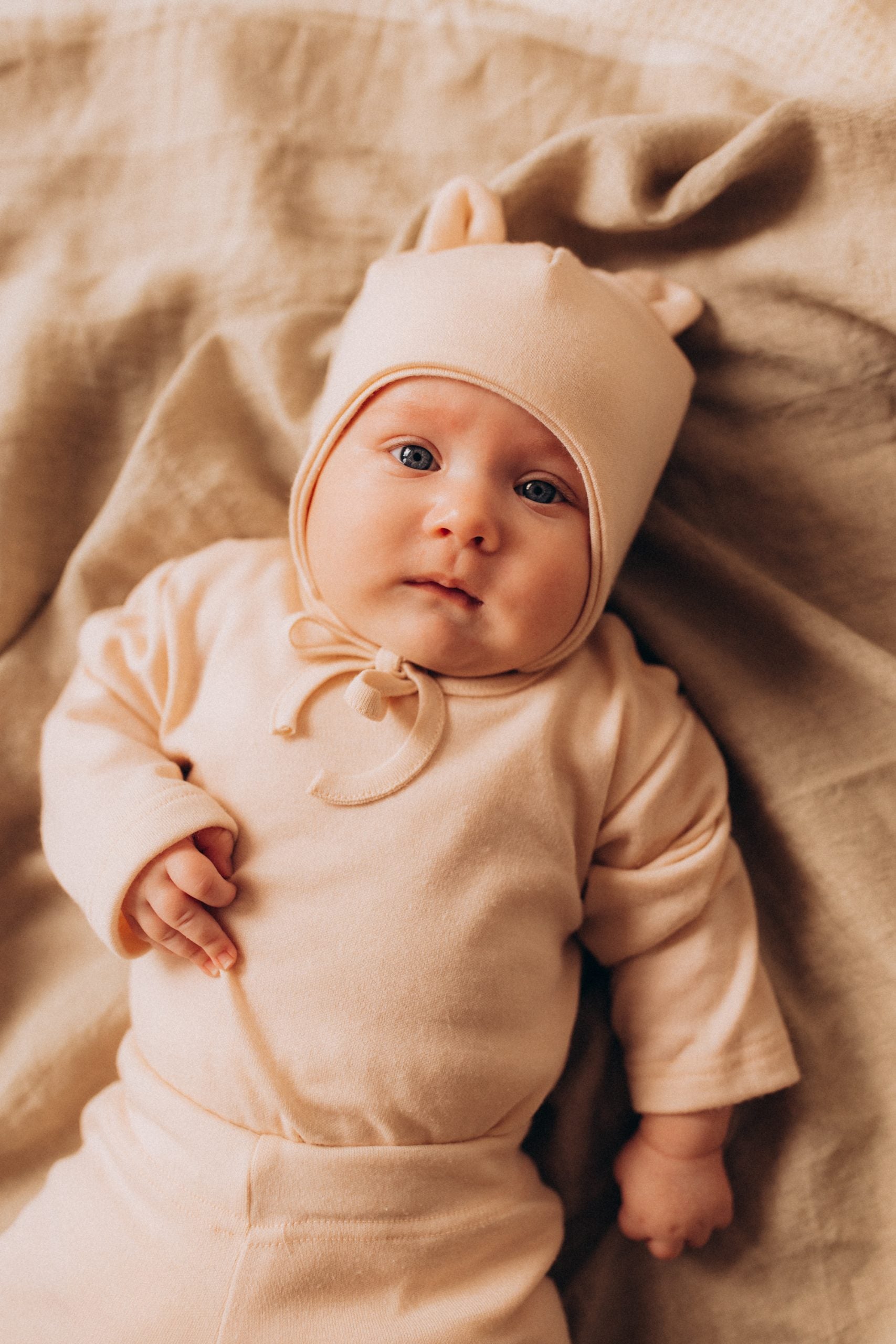 MUSLIN PLUMETIS SUN HAT WITH TEDDY EARS – GOTS – SS25%